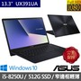 【 【ASUS超值Office2019組】UX391UA 13.3吋FHD窄邊框輕薄筆電-深海藍(i...