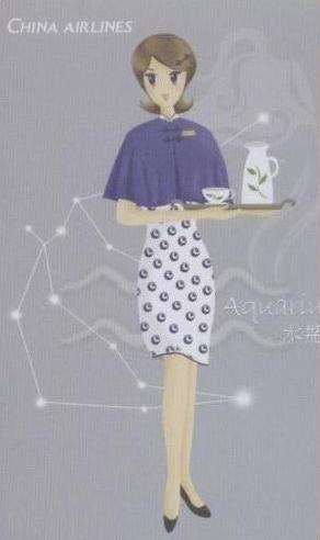 她說是一件白色的旗袍, 上面繡滿了華航的藍色印花好像還有個披風什麼的...