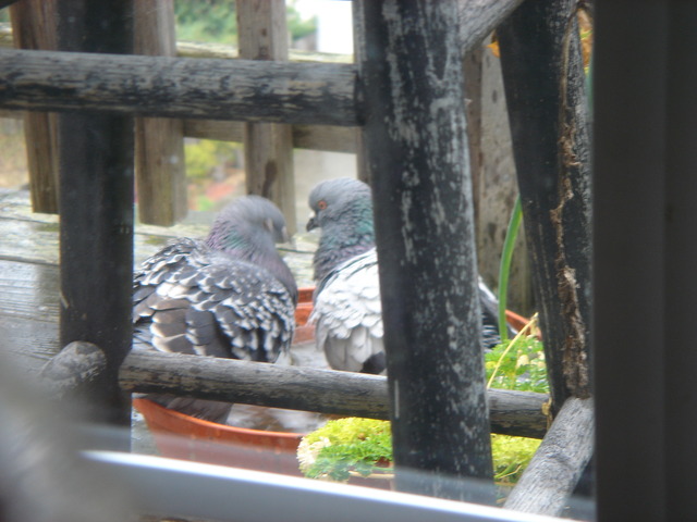 我平時在窗外小花園 擺放了一個鳥浴盆, 常常會有一些麻雀鴿子來喝水
