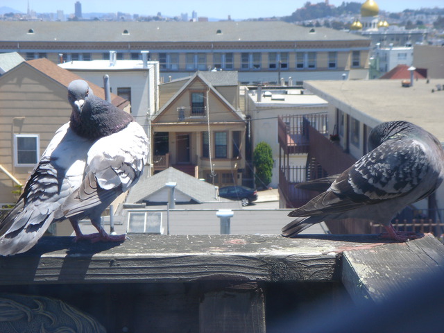 鴿子受到驚嚇, 啪達啪達地飛起來 想要展翅而去