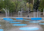 大天空聲稱的天空和雲彩的通過艾伯塔省天空鳥漂流和收集有圖案的表面在卡爾加里的奧林匹克廣場的中央噴泉空...