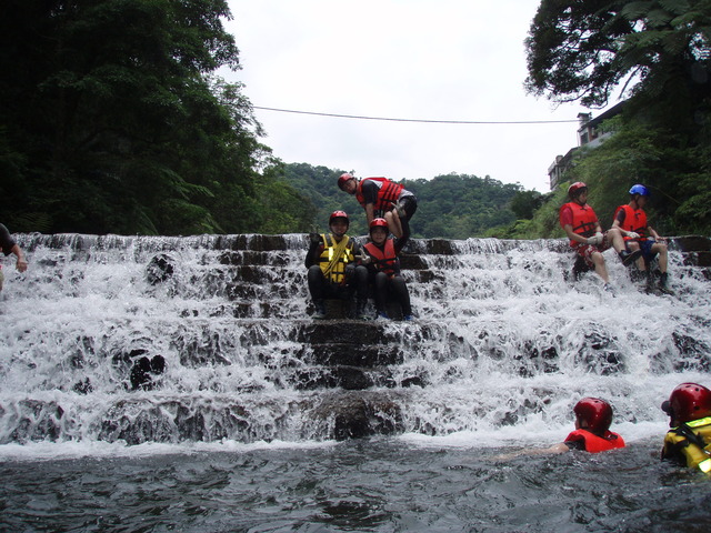 平溪溯溪行前教育終點休息站三人渡溪方式嶺腳瀑布前集體渡深潭魔界入口一線天