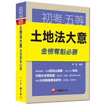 初考、地方五等、各類五等:土地法大意金榜奪魁必勝