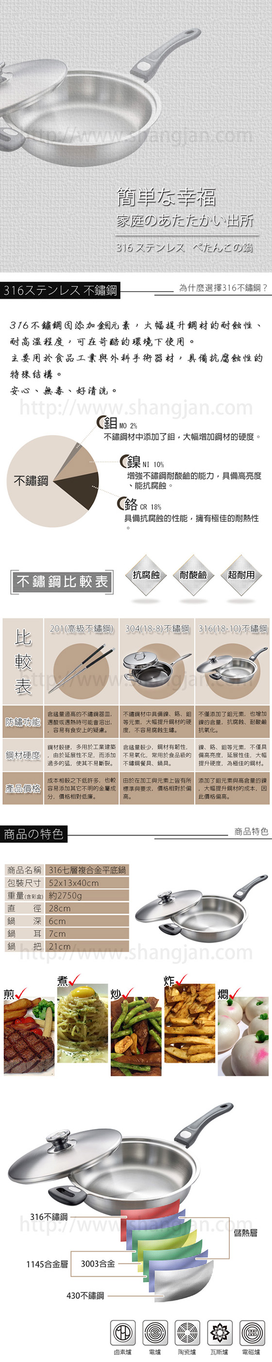 品名:【台灣理想PERFECT】台灣製-極致#316不鏽鋼七層平底鍋28cm(附上蓋)