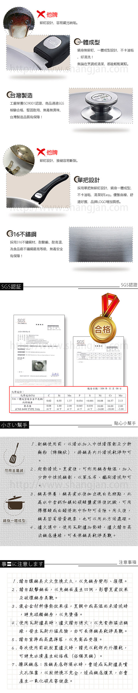 ●316不鏽鋼材鍋身一體成形,好清洗不藏汙納垢