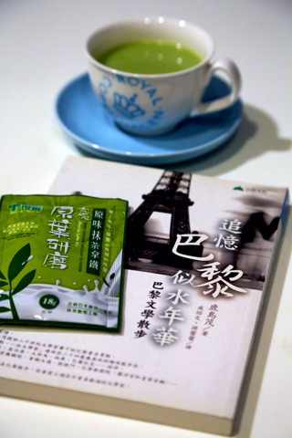 《三國演義》可以說是我第一部從頭翻到尾的古典小說了,小說中有幾個令人印象深刻的場景,例如上面的「酒當溫時斬華雄」一段即是其中一個,每當重溫這段文字,便覺血脈噴張,口乾舌燥,文字雖是讓人看得過癮,但總是想著,此時若能有壺溫潤的茶湯解渴,然後伴著文字暢飲,當是人生一大樂事,然不疾不徐的煮水、溫杯、烹茶的沖泡過程,對於解渴卻是往往緩不濟急,亦萬萬不可為了貪快而改沖了杯咖啡,因為那肯定是會讓燠燥的情緒火上加油,輕則急火攻心,重則傷人胃脾。經過幾次的測試之後,我覺得,此時若能來杯簡易的杯沖泡式抹茶包,不但立即方便,且其解渴與舒緩情緒的效果亦最好。