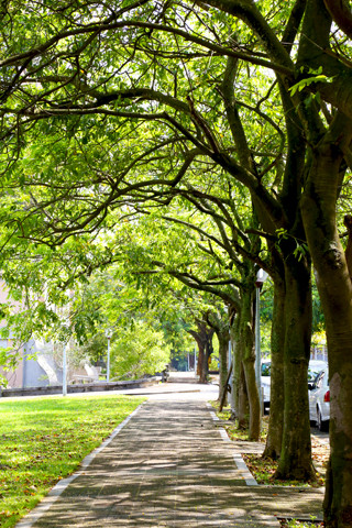 中正大學裏那整排的鳳凰樹猶如盛開的綠傘,真美