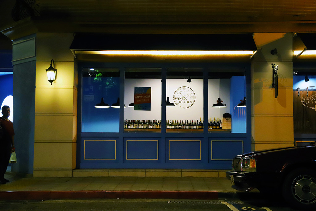 許久未在夜晚逛東區了,路旁一處店家的櫥窗突然勾了我的目光。這櫥窗真是精美,我不禁發出輕聲讚嘆,高雅的蒂芬妮藍外牆鑲嵌了直條分隔的大片長方玻璃窗,貼於玻璃窗內的木桌上整齊排列著繽紛的酒瓶,而懸浮在店內空氣中的碟狀吊燈正spotlight的照著那列整齊的酒瓶上,彷似招喚著行人:來吧,來吧,來場歡飲吧!