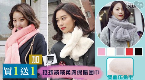折價卷! 票選前五名的加厚珍珠絨絨柔膚保暖圍巾,買1送1!-這邊好便宜