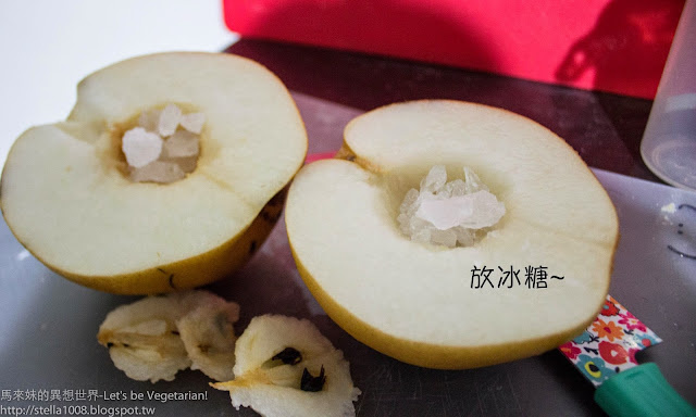 不要放太多冰糖,因為本身水梨就很甜,適量的冰糖提味就好~