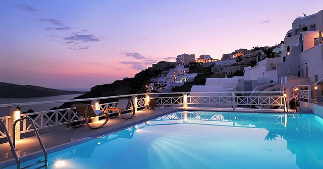 - 柯里里加斯套房飯店 Cori Rigas Suites(看房價):評價高、房間很大色調柔和優美,懸崖邊景色好,公共陽台很美麗,有望海的按摩池可以泡!