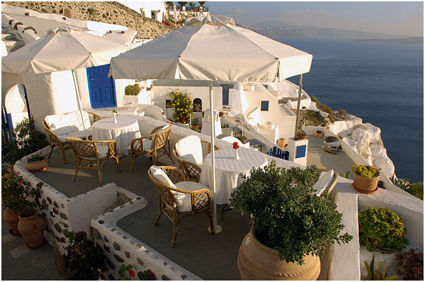 一方面它位在懸崖邊,每間房間都有陽台可以眺望愛琴海。