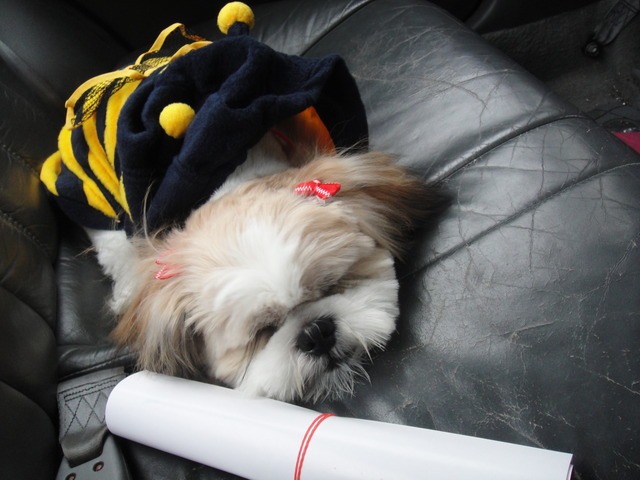 長途車程後,睡到吐舌頭!我們還以為牠暴斃勒~