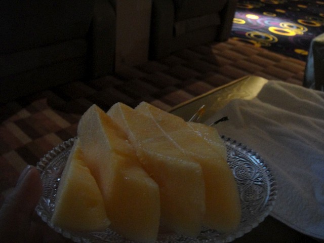 服務員問我們:「小姐,要吃絲瓜還是哈密瓜?」
