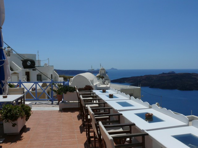 - 席瑞斯飯店 Hotel Thireas(看房價):當時臨時被升級成這家飯店,房間表現中規中矩(家庭房好像不錯),但房間都有小陽台,共用陽台景色很好,早餐還不錯!