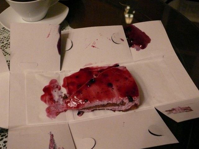 好吃的藍莓蛋糕已經晃到軟趴趴了~