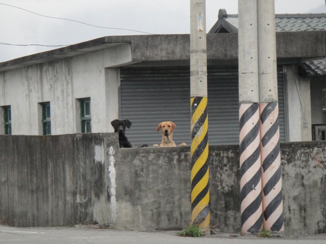 回頭看,竟然是兩隻比人還要大的狗!嚇使我了~