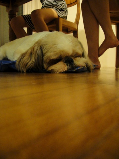 饅頭躺在地上補眠的睡姿也太醜了一點XD