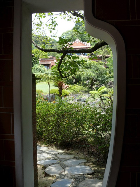 這個蝴蝶窗更是妙,剛好位於南園的中間點,
