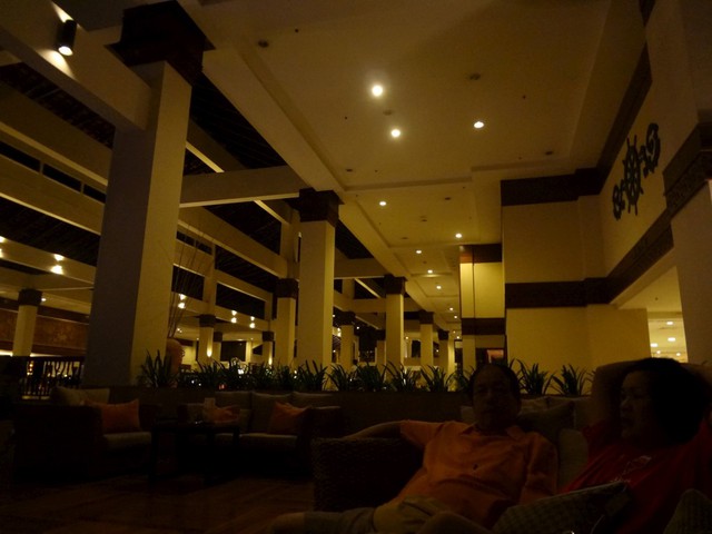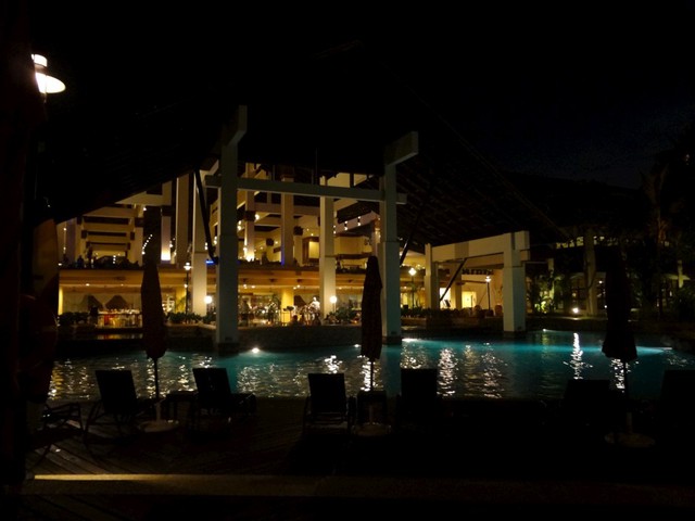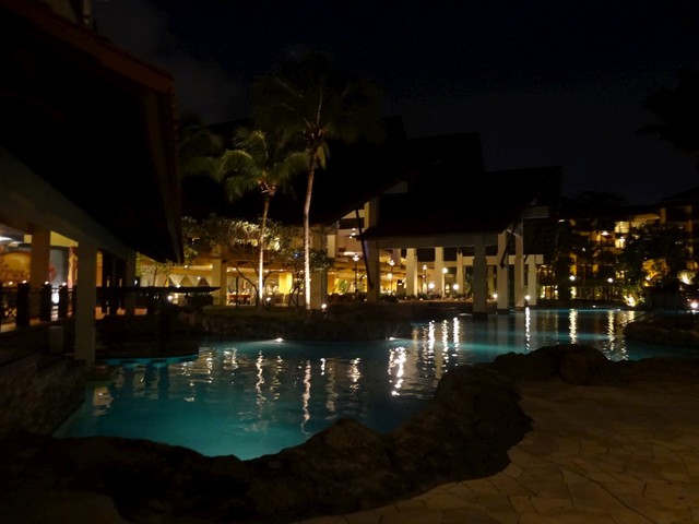 由於還睡不著,所以我們又走出房間~來外面吹吹海風,哇~沒想到,一整個超有渡假氣氛,從大廳到游泳池旁...超棒的!!!
