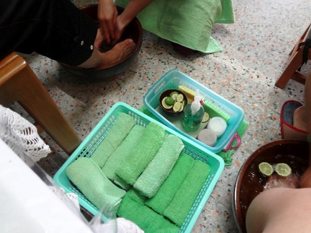 不過生意很好!按摩的過程中陸陸續續都有人!先用檸檬幫妳洗腳~~~