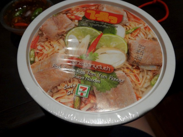 我也就舉牌白旗投降了!!所以去7-11買了酸酸辣辣的泡麵(老爹想吃)~