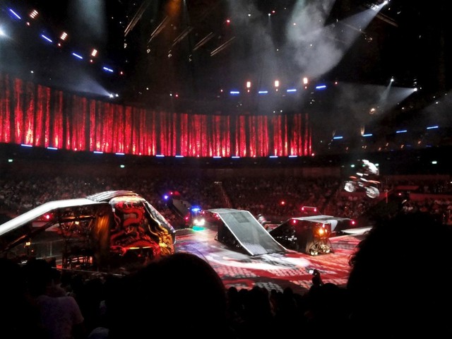 過程中還會穿插一些特技,有點像是太陽馬戲團那樣,就是很多空中飛人跳來跳去,看起來很驚險,但沒有一個人掉下去。