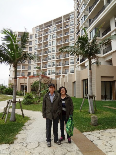 這是飯店的後方,有一個小花園,爹娘看起來頗開心!