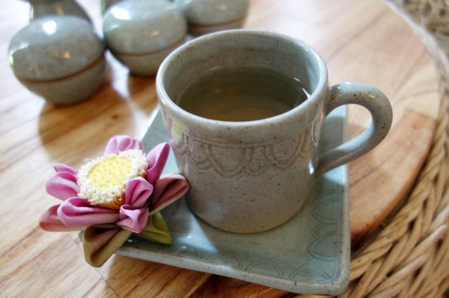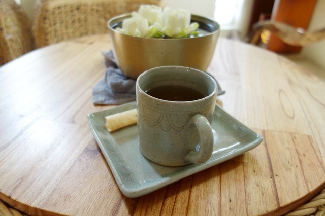 呈上薑茶不忘還要放上小蓮花~而且這裡都要將蓮花的花瓣折起來,好奇妙!!