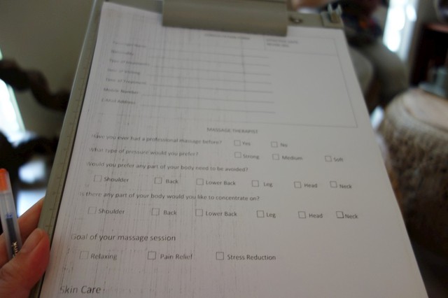 當我翻身,瞥見小姐滿頭大汗的容顏,真是覺得不好意思,她真是用盡全身力氣在幫我按摩,做個熱石按摩讓人那麼辛苦