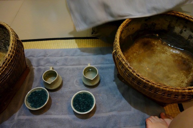一個人負責加熱石頭,一個人負責按摩,
