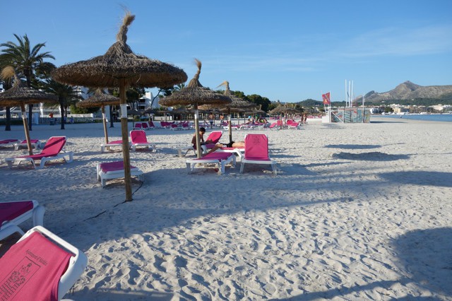 當時想要來馬略卡Mallorca,主要就是被各式各樣的海灘所吸引!所以從城市帕爾馬Palma回來後,雖然老爹很想睡覺,休息片刻後,我們就要前往離飯店很近的海港Port d'Alcúdia(阿爾庫迪亞),這兒是馬略卡非常知名的渡假聖地,飯店林立,有白白的沙灘&淺淺的海水可以玩!也很推薦住這兒喔!(查Alcudia房價)