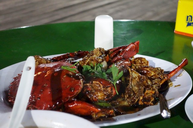突然老闆娘端上了黑胡椒螃蟹耶!(說我們運氣很好,螃蟹剩下最後三人份的食材,後面有些旅客也想點就沒啦~)