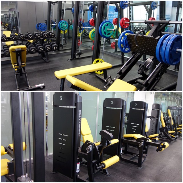 不過「釜山海雲台馨樂庭公寓式酒店Citadines Haeundae Busan」(查房價)的健身房有蠻多專業的器材耶!就是我平常在健身房會玩的~而且色系設計得好鮮豔!