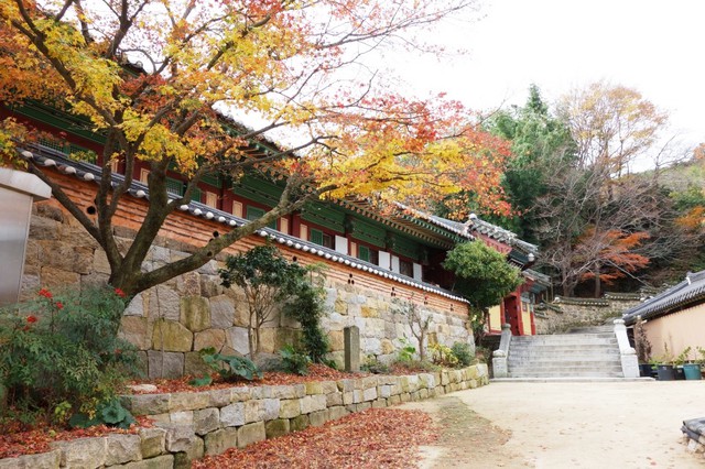 梵魚寺是歷史悠久的寺廟,建於西元678年。因為也是賞楓名勝&爬山景點,我們來的這天是假日,當地人可說是蠻多的呢!
