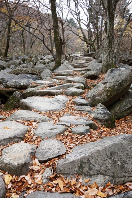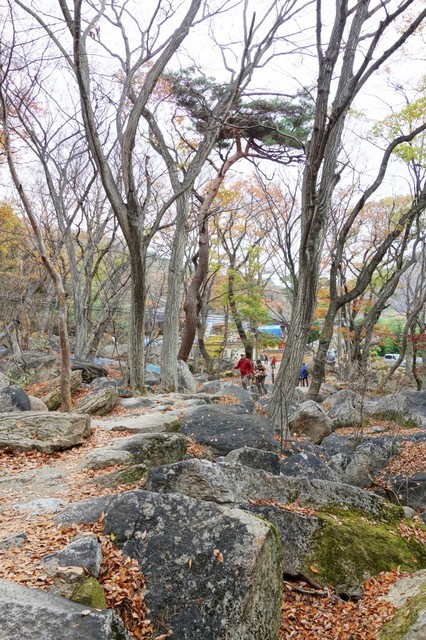 其實這裡還有超多山路可以爬,韓國的大叔大嬸們,都會著裝完備(穿防水、防風外套、戴帽子、拿登山仗」,而且每個健步如飛,這裡的人都對於石頭山很習以為常的樣子,但還真的不太好走呢!!