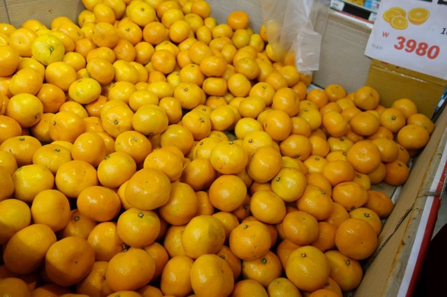這蜜桔更是意外的超級美味,香甜多汁!超市的員工幫我們挑了一大袋,結果稱重後竟然不到台幣100吧!這大概是來韓國吃最超值的東西吧~