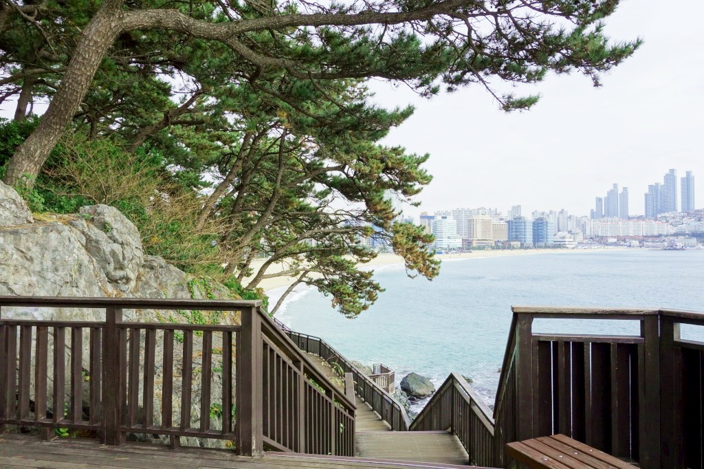 沿著釜山威斯汀朝鮮飯店The Westin Chosun Busan(查房價)海邊那面走,就可以找到這個沿著海的松林步道。