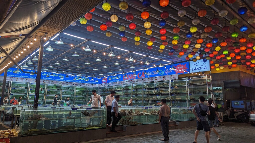 而且峴港有許多超級大的海鮮餐廳,生鮮水產直接在水缸裡給顧客挑選,種類多得像水族館一樣,完全不誇張。