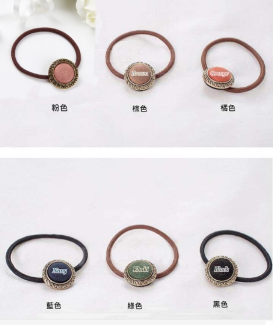 C款復古鈕扣髮圈(粉色/棕色/橘色/藍色/綠色/黑色)