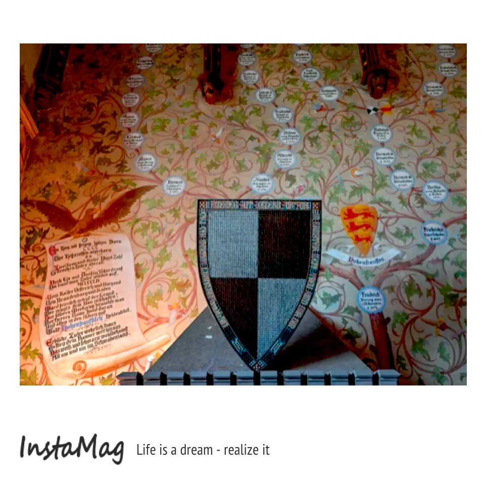 城堡外部可以照相,進到內部就禁止拍照。艾文有看到一些網友有拍到內部的照片分享,可能是後來規則有變有開放拍照。進城堡會先到家傳大廳,這裡的牆上畫了霍亨索倫家族的家族樹,城堡內部的照片翻拍自網路圖片。