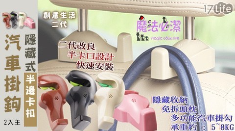 【 【魔法必潔】創意生活二代隱藏式半邊卡扣汽車掛鉤-1組" 】
