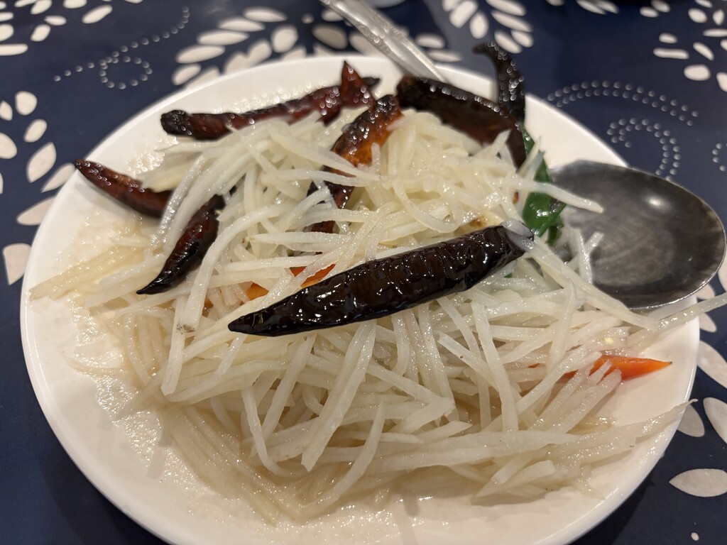 炸酥皮很特別也不錯吃,素雞相比起來,就清淡很多,不特別酸嗆土豆絲,我的最愛,雖然每次點的時候都覺得浪費了一道菜的名額,但就是很愛吃!