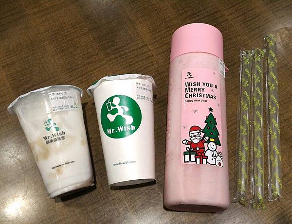 總共買了芋頭鮮奶冷熱各一杯, 草莓牛奶隨身瓶一杯