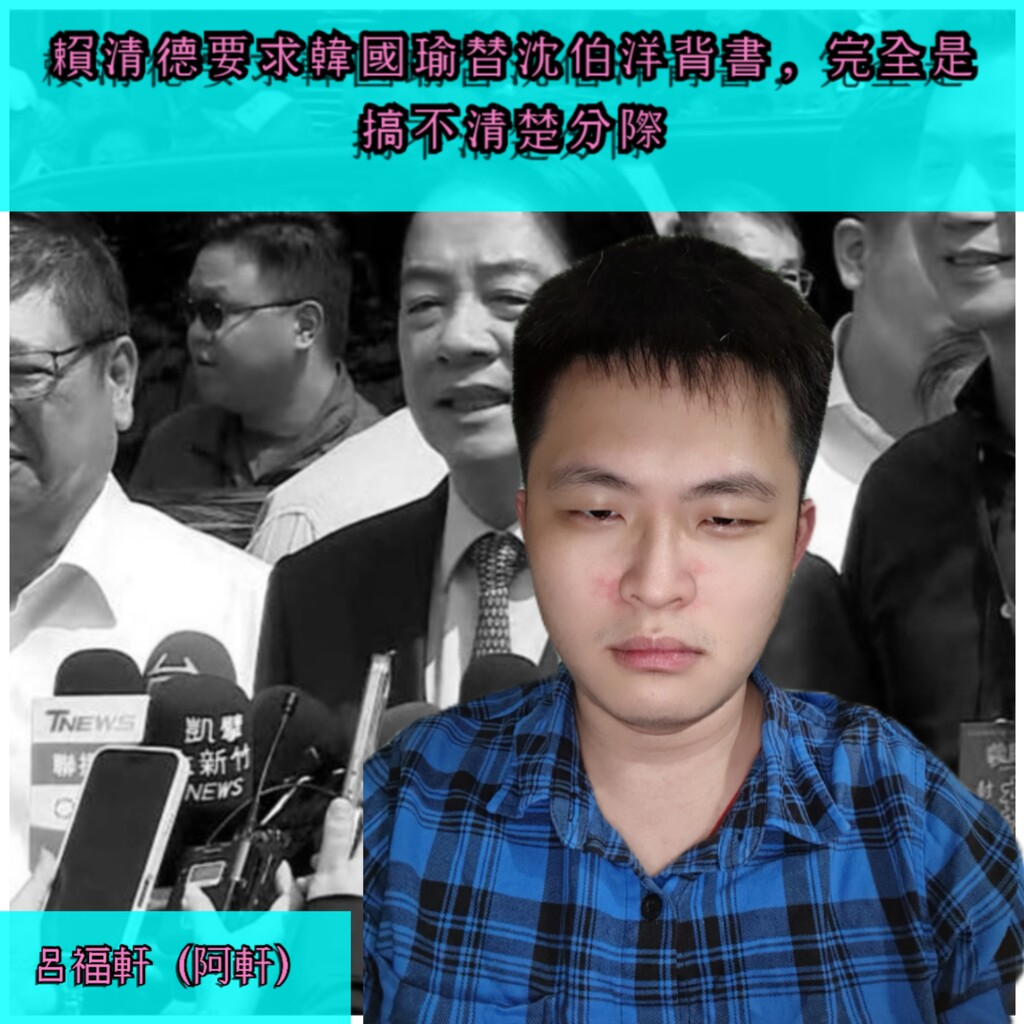 ↑呂福軒批判賴清德要韓國瑜替沈伯洋背書文宣