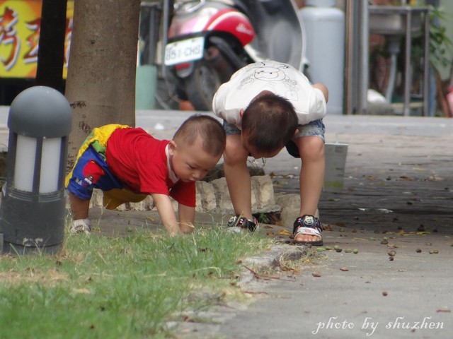 一對小兄弟兀自玩耍,吸引我的鏡頭跟隨好一陣子