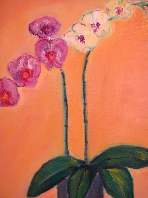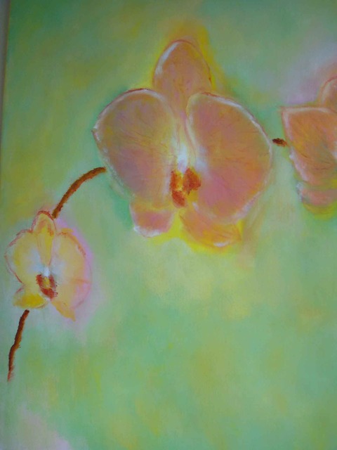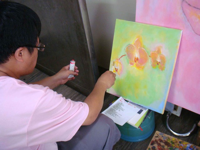 銘嵩作品:這個大男人的作品充滿柔情蜜意,一點也不粗魯,浪漫這名詞也很難定義,他的作品有著年輕的幻想,一點也不老。他的蘭花有花瓣上的脈紋,像微血管般的細緻。