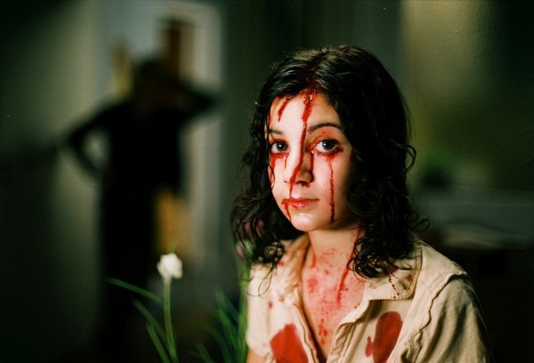 當艾莉來找奧斯卡時,奧斯卡必須「請她進去」,奧斯卡說:「如果我不呢?」結果就會變成上圖那樣(七孔流血)......這部片名為「Let the right one in」的意思在此。異類畢竟與人有界限的。奧斯卡嚇壞了...