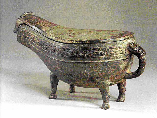 這件倒水讓人洗手用的銅匜,出自陜西省岐山縣董家村的窖穴。在器蓋與腹底鑄有銘文,敘述有位小貴族犯了誣告上司的刑法,依法應該接受鞭打一千下以及刺紋之刑。但小貴族認了錯,付了罰金,所以赦免之,不刺紋而改鞭打五百下。銅器上表達刺紋之刑的字作,左上的部份是一位有眼睛有眉毛的人,那是古文字用以表現貴族的手法。右半部分作手持刺紋的工具,連刺紋的尖針也給畫了出來。左下則是黑字,一般的受刑人。想來這個字強調受刑人是個貴族,所以特別把貴族的形象添加上去。