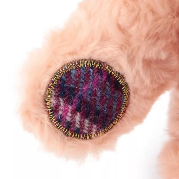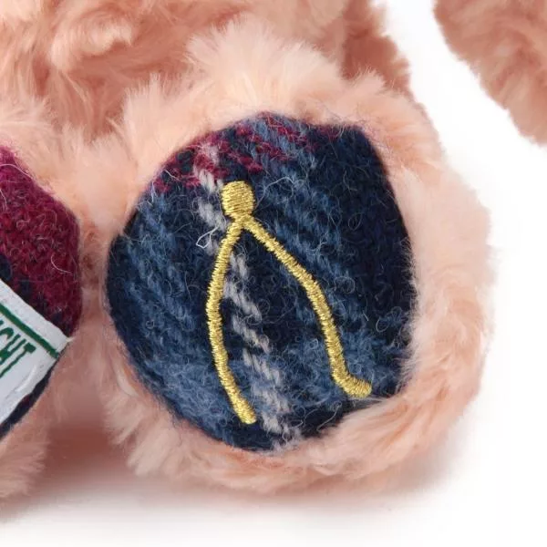 頸部的蝴蝶結和手掌和腳掌上用了Harris Tweed印花布,兼具高級感且可愛的格紋讓人充滿柔和的感受。